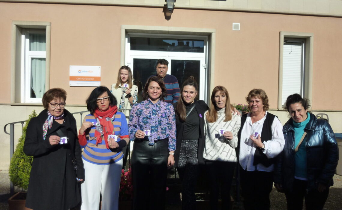 El pasado jueves día 14 se hizo entrega en nuestras instalaciones del Centro Ordoiz de un pedido de 500 broches de manitas moradas al Ayuntamiento de Estella-Lizarra.